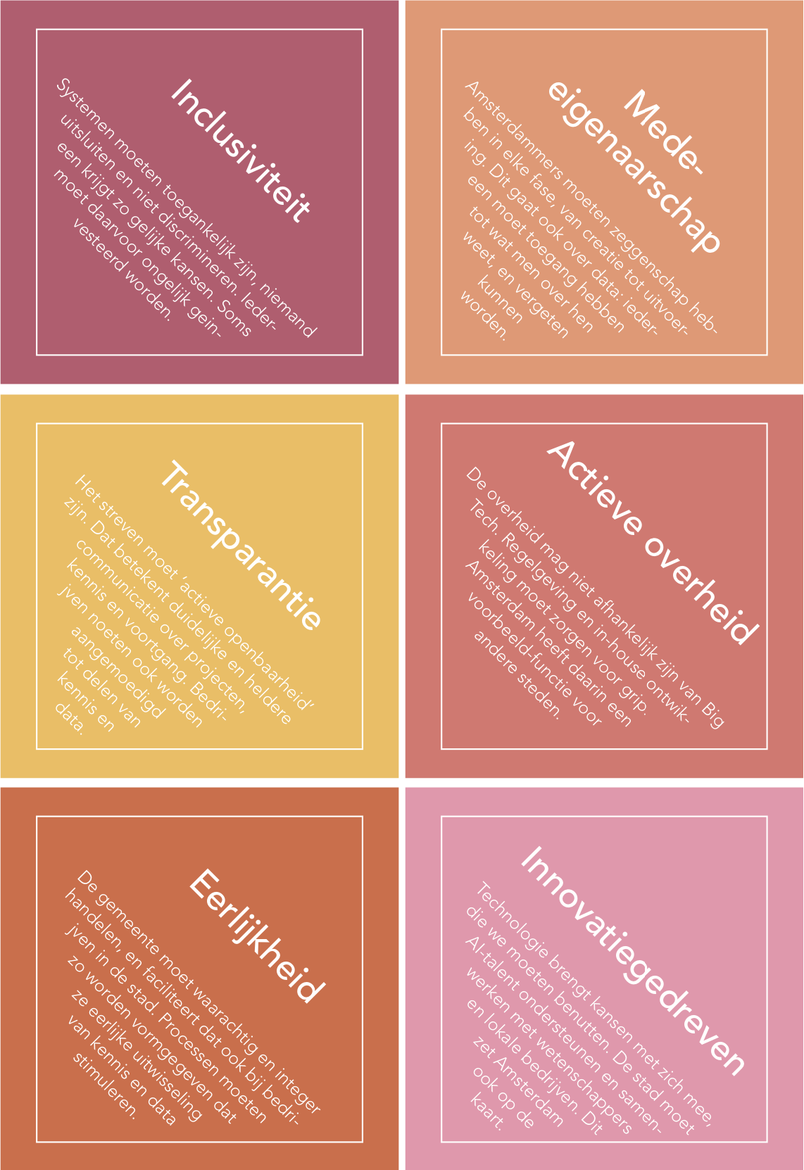 In coalitieakkoorden, beleidsdocumenten en uitvoeringsagenda's worden vaak ambities en publieke waarden omschreven die toepasbaar zijn op het gebruik van technologie in de stad. Tijdens een participatie-bijeenkomst vraag je feedback van bewoners. Het zou handig zijn als de bewoners it soort democratisch afgesproken waarden goed op een rijtje hebben, zodat duidelijk is waar het voorstel op getoetst moet worden. De waardenkaartjes zijn hier een tool voor.
